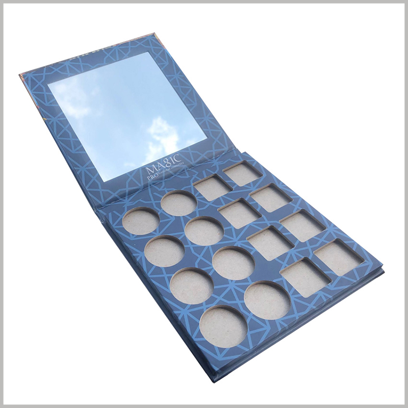 Our product is a 16-color eye shadow box. The packaging box is a foldable book-shaped box, which is made of hard cardboard, and the printed color has high color rendering and is resistant to abrasion. The background pattern of the oil painting style is printed on the outside of the box, and the retro style of the eyeshadow disc is displayed at once. This is the most popular and popular type in the eyeshadow disc today. After the packaging box is opened, it is mainly divided into two parts. A mirror is inlaid on the lid of the box to facilitate the use of eye shadow and make-up. The inside of the box can be made into a small round or square grid according to demand, which is used to place monochrome eye shadow. Our workmanship is very meticulous, although 16 grids need to be cut out, but mature technology can achieve neat arrangement and smooth edges.
