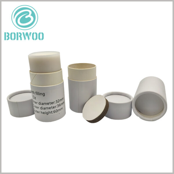Compared with plastic deodorant tube packaging, we prefer paper push tube packaging because pure paper packaging is biodegradable and compostable, and its role in environmental protection is self-evident. We can provide you with 1Oz deodorant tube packaging, and there are two sizes to choose from, one is 26mm diameter and 85mm height, and the other size is 36mm diameter and 60mm height. We use oil-proof paper on the innermost side of the paper tube to prevent the deodorant liquid from penetrating the paper when it is poured into the tube. Our bottom push-up bottom plate is 7mm thick, which can also prevent the deodorant liquid from penetrating the bottom when it is poured in. Although we show you the paper tube packaging without printing content, all options including printing content are customizable. Therefore, you can print product and brand content on the deodorant packaging to promote products and brands.