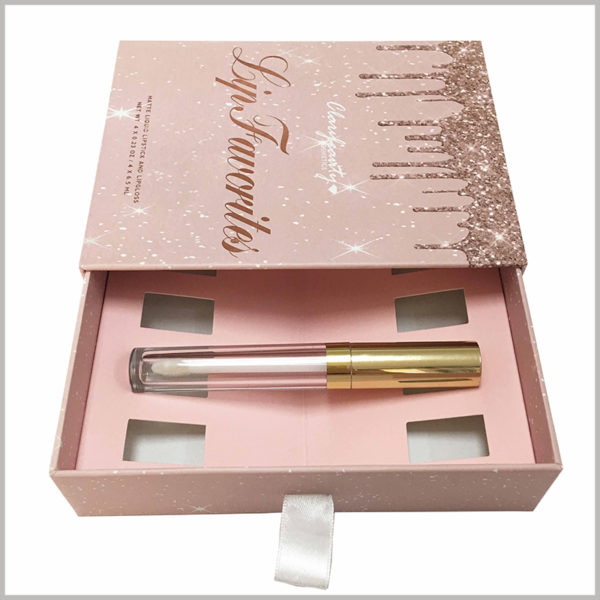 As a cosmetic liquid, lip gloss can change the color and luster of lips and make women more charming. Like lipstick, women are not satisfied with just one lip gloss, usually want to have a variety of lip gloss, or plan to purchase multiple lip glosses at once. This is a very good thing for merchants. You can customize the cosmetic lip gloss packaging boxes set to sell the same or different multiple lip glosses at one time, and quickly increase the overall sales performance. As a fashionable cosmetic, lip gloss not only has high requirements for the product itself, but also has certain requirements for the style of lip gloss boxes. Many female customers believe that packaging design largely reflects the value of the product.