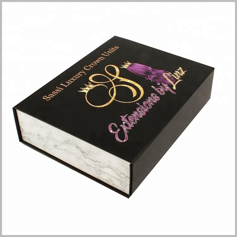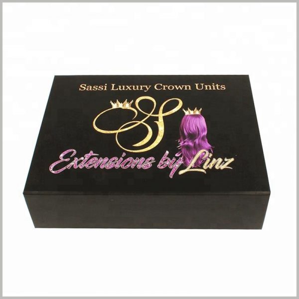 Packaging has an important influence on the grade and value of cosmetics. This is a beautiful packaging box for wig. Based on many years of experience in designing and manufacturing cosmetic boxes and understanding of wig, we use black cardboard as surface paper It can reflect the elegance and nobility of the wig. The hot stamping and purple printing further reflects the luxury of packaging and products.